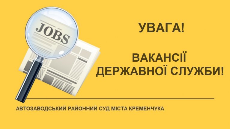 Автозаводський районний суд міста Кременчука оголошує добір на зайняття вакантних посад: